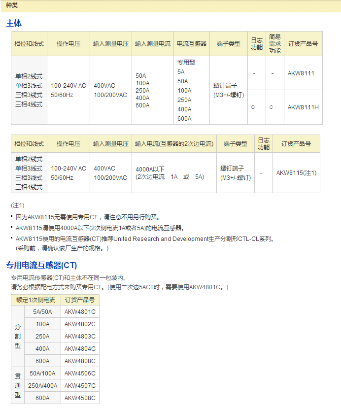 如圖(A)以往商品1次邊測(cè)定400A時(shí),專用CT和已設(shè)的CT形成兩段構(gòu)成使用。AKW8115 一次側(cè)4000A以下情況未形成兩段構(gòu)成時(shí),可直接連接。